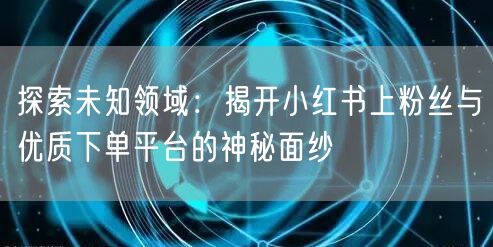 在数字化时代,社交媒体平台已成为人们获取信息、交流互动的重要渠道。小红书作为一个拥有庞大粉丝群体的社交平台,吸引了众多用户的关注。同时,优质下单平台也在其中扮演着举足轻重的角色。本文将带您揭开小红书上粉丝与优质下单平台的神秘面纱,探寻其背后的奥秘。