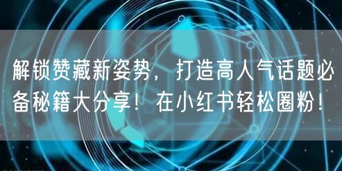 在小红书这个充满活力的社交平台上,如何解锁赞藏新姿势,打造高人气话题,吸引更多粉丝关注,成为每个内容创作者关注的焦点。本文将为你揭示这一系列的秘籍,让你轻松在小红书圈粉!