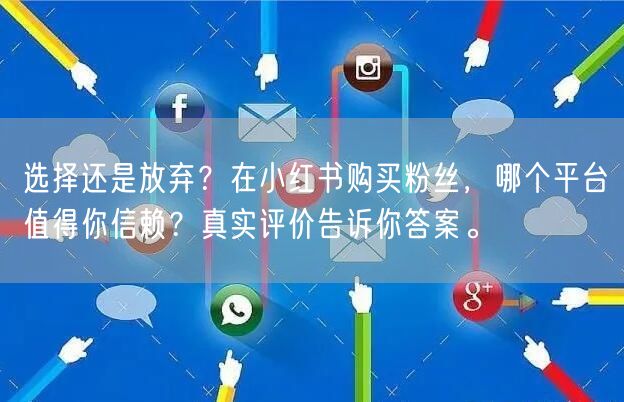 在选择购买小红书粉丝时,我们应该谨慎选择平台。通过对比不同平台的优劣,结合真实用户的评价,找到那个更值得你信赖的平台。同时,我们也要明白,购买粉丝只是提升影响力的一种手段,真正的关键在于内容的质量和与粉丝的互动。