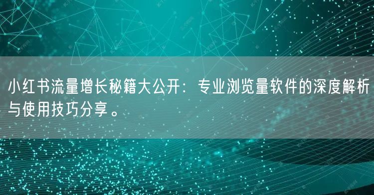 随着社交媒体的快速发展,小红书已成为众多品牌和个体创作者的重要推广平台。如何在这个竞争激烈的市场中脱颖而出,实现流量增长?本文将为你揭示专业浏览量软件的深度解析与使用技巧。