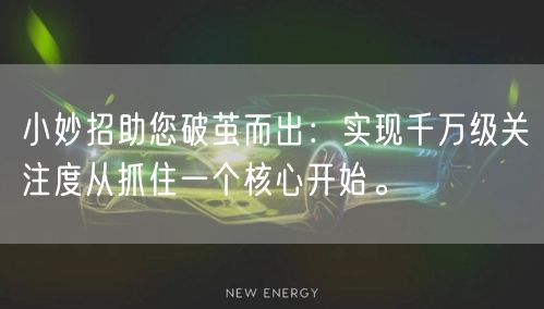 在这个信息爆炸的时代,如何吸引千万级的关注度,成为个人或品牌发展的关键因素之一。很多人都希望像蝴蝶一样破茧而出,展翅高飞,但实现这一目标并不容易。本文为你分享几个小妙招,帮助你从抓住一个核心开始,轻松实现千万级关注度。