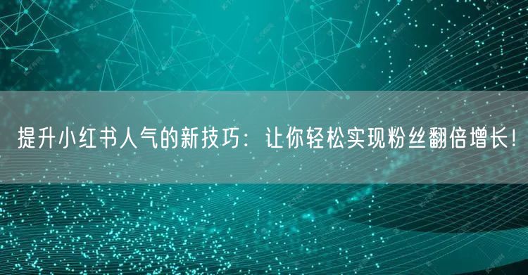通过以上新技巧的学习和实践,你将能够在小红书上提升人气,实现粉丝翻倍增长。关键在于持续努力、不断优化和创新。希望本文对你有所帮助,祝你在小红书上取得更大的成功!